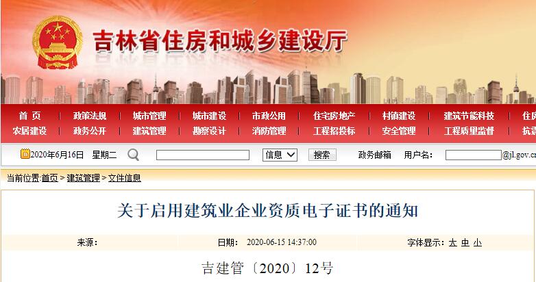 行業(yè)動態(tài)|吉林省住房和城鄉(xiāng)建設(shè)廳關(guān)于啟用建筑業(yè)企業(yè)資質(zhì)電子證書的通知