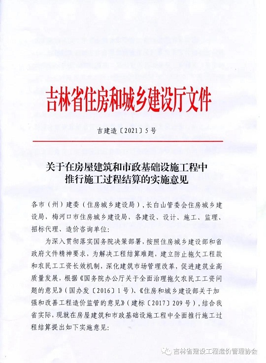 行業(yè)動態(tài)|關于在房屋建筑和市政基礎設施工程中推行施工過程結(jié)算的實施意見 上一篇:行業(yè)動態(tài)|吉林省住建廳關于調(diào)整費用定額相關規(guī)定的通知 下一篇:行業(yè)動態(tài)|2020年長春市結(jié)算文件正式發(fā)布