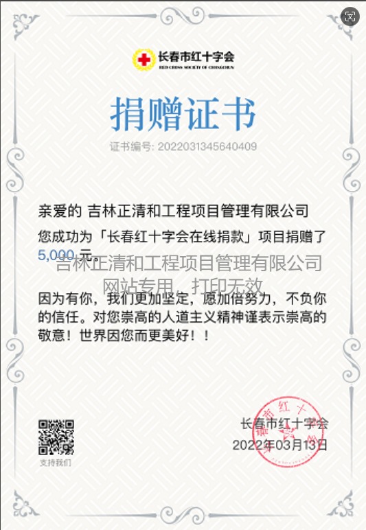 “書送未來 益滿春城”慈善助學項目捐贈證書