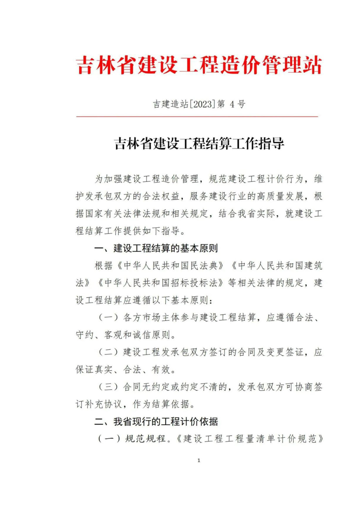 吉林省建設(shè)工程結(jié)算工作指導(dǎo)(吉建造站[2023]第4號)
