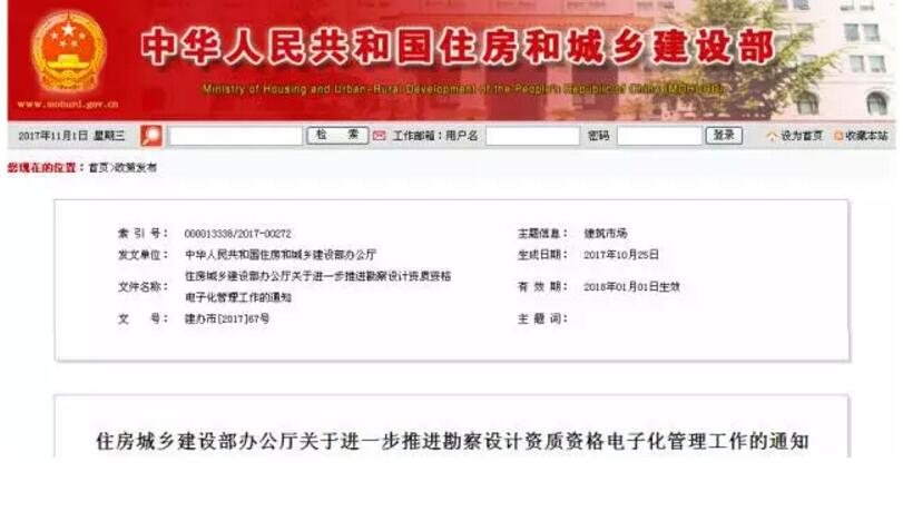 行業(yè)動(dòng)態(tài)|勘察設(shè)計(jì)資質(zhì)資格實(shí)行電子化管理,2018年1月1日起執(zhí)行 住房城鄉(xiāng)建設(shè)部辦公廳關(guān)于進(jìn)一步推進(jìn)勘察設(shè)計(jì)資質(zhì)資格電子化管理工作的通知 各省、自治區(qū)住房城鄉(xiāng)建設(shè)廳,直轄市建委,北京市規(guī)劃國土委,中央軍委后勤保障部軍事設(shè)施建設(shè)局: 為貫徹落實(shí)《國務(wù)院辦公廳關(guān)于促進(jìn)建筑業(yè)持續(xù)健康發(fā)展的意見》(國辦發(fā)[2017]19號(hào))精神,加快推進(jìn)我部簡政放權(quán)、放管結(jié)合、優(yōu)化服務(wù)改革,提高勘察設(shè)計(jì)資質(zhì)資格審批效率,加強(qiáng)事中事后監(jiān)管,現(xiàn)就推進(jìn)勘察設(shè)計(jì)資質(zhì)資格電子化管理有關(guān)工作通知如下: 一、實(shí)行勘察設(shè)計(jì)注冊(cè)工程師網(wǎng)上申報(bào)制度。向我部申請(qǐng)勘察設(shè)計(jì)注冊(cè)工程師初始注冊(cè)、延續(xù)注冊(cè)、變更注冊(cè)、注銷注冊(cè)時(shí),須通過“全國一級(jí)注冊(cè)建筑師、注冊(cè)工程師注冊(cè)管理信息系統(tǒng)”(以下簡稱“注冊(cè)管理信息系統(tǒng)”)進(jìn)行網(wǎng)上申報(bào),不再提交紙質(zhì)申報(bào)材料。具體申報(bào)程序如下: (一)申請(qǐng)注冊(cè)人員登錄我部網(wǎng)站(網(wǎng)址:www.mohurd.gov.cn)下載“注冊(cè)管理信息系統(tǒng)”,打印并填寫申請(qǐng)表,申請(qǐng)表經(jīng)親筆簽名后連同相關(guān)附件材料一并提交聘用單位。 (二)聘用單位將經(jīng)加蓋本單位公章的申請(qǐng)表及相關(guān)附件掃描形成電子申報(bào)材料后,通過“注冊(cè)管理信息系統(tǒng)”上報(bào),相關(guān)紙質(zhì)申報(bào)材料留存聘用單位備查。 (三)省級(jí)注冊(cè)管理部門收到聘用單位上報(bào)的電子申報(bào)材料后,要按照《勘察設(shè)計(jì)注冊(cè)工程師管理規(guī)定》處理,并在規(guī)定期限內(nèi)將全部電子申報(bào)材料通過“注冊(cè)管理信息系統(tǒng)”上報(bào)我部。 二、加強(qiáng)對(duì)申請(qǐng)勘察設(shè)計(jì)資質(zhì)企業(yè)所報(bào)注冊(cè)人員社保信息的審查。企業(yè)向我部申請(qǐng)勘察設(shè)計(jì)資質(zhì)時(shí),須報(bào)送由社會(huì)保險(xiǎn)機(jī)構(gòu)出具的注冊(cè)人員在本企業(yè)繳納社會(huì)保險(xiǎn)費(fèi)的證明。對(duì)于未在本企業(yè)繳納社會(huì)保險(xiǎn)費(fèi)的注冊(cè)人員,資質(zhì)審查時(shí)不予認(rèn)可。 三、各省級(jí)住房城鄉(xiāng)建設(shè)主管部門要加快與有關(guān)部門和單位的信息整合和對(duì)接,加強(qiáng)本地區(qū)工程項(xiàng)目數(shù)據(jù)庫建設(shè)。各地要按照《住房城鄉(xiāng)建設(shè)部辦公廳關(guān)于扎實(shí)推進(jìn)建筑市場監(jiān)管一體化工作平臺(tái)建設(shè)的通知》(建辦市函[2017]435號(hào))要求,在2017年12月31日前完成工程項(xiàng)目信息補(bǔ)錄工作,將工程項(xiàng)目的招標(biāo)投標(biāo)、施工圖審查、合同備案、施工許可、竣工驗(yàn)收備案等環(huán)節(jié)的數(shù)據(jù)全部納入省級(jí)建筑市場監(jiān)管一體化工作平臺(tái),與全國建筑市場監(jiān)管公共服務(wù)平臺(tái)實(shí)時(shí)對(duì)接聯(lián)通,并保證上傳數(shù)據(jù)及時(shí)、準(zhǔn)確、完整。 對(duì)申請(qǐng)建筑行業(yè)、市政行業(yè)及其相應(yīng)專業(yè)(人防工程專業(yè)除外)工程設(shè)計(jì)甲級(jí)資質(zhì)(包括申請(qǐng)施工總承包特級(jí)資質(zhì)的企業(yè)同時(shí)申請(qǐng)的相應(yīng)設(shè)計(jì)資質(zhì))的企業(yè),未進(jìn)入全國建筑市場監(jiān)管公共服務(wù)平臺(tái)的企業(yè)業(yè)績和個(gè)人業(yè)績,在資質(zhì)審查時(shí)不作為有效業(yè)績認(rèn)定。 四、申請(qǐng)資質(zhì)企業(yè)和申請(qǐng)注冊(cè)人員電子申報(bào)材料格式和內(nèi)容應(yīng)當(dāng)分別符合建設(shè)工程企業(yè)資質(zhì)網(wǎng)上申報(bào)和審批系統(tǒng)、“注冊(cè)管理信息系統(tǒng)”要求。 五、申請(qǐng)注冊(cè)人員和申請(qǐng)資質(zhì)企業(yè)應(yīng)當(dāng)對(duì)申報(bào)材料的真實(shí)性和有效性負(fù)責(zé)。若發(fā)現(xiàn)申報(bào)材料中存在虛假內(nèi)容或者承諾情況與實(shí)際情況不符的,我部將依法予以嚴(yán)肅處理,并將其行為記入全國建筑市場監(jiān)管公共服務(wù)平臺(tái),對(duì)社會(huì)公開。 六、加大對(duì)舉報(bào)投訴的查處力度。對(duì)我部轉(zhuǎn)地方核查的反映申請(qǐng)資質(zhì)企業(yè)涉嫌弄虛作假或者申請(qǐng)注冊(cè)人員涉嫌違規(guī)注冊(cè)的舉報(bào)投訴,有關(guān)省級(jí)住房城鄉(xiāng)建設(shè)主管部門要按要求組織核查并及時(shí)報(bào)送核查結(jié)果。情況核查清楚后,我部依法做出處理決定。 七、加強(qiáng)資質(zhì)動(dòng)態(tài)核查。省級(jí)住房城鄉(xiāng)建設(shè)主管部門應(yīng)當(dāng)按照“雙隨機(jī)、一公開”原則,每年以不低于5%的比例對(duì)本地區(qū)勘察設(shè)計(jì)企業(yè)資質(zhì)進(jìn)行動(dòng)態(tài)核查,重點(diǎn)核查發(fā)生質(zhì)量安全事故、存在建筑市場不良行為記錄及注冊(cè)人員被撤銷、吊銷注冊(cè)執(zhí)業(yè)證書的企業(yè)。經(jīng)核查已不符合相應(y